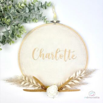 Couronne prénom en tissu et fleurs séchées – Vert eucalyptus