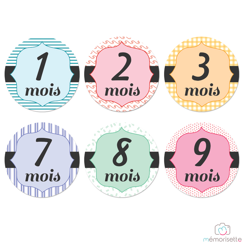> 9 stickers pour un suivi mensuel de 1 à 9 mois